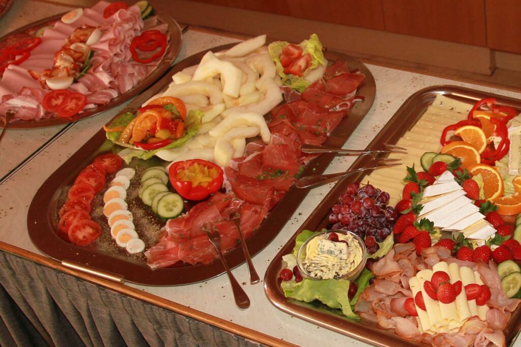 - 1x pro Woche am Samstag großes Abendbuffet (Käseplatte, Schinkenplatte, Kümmelbraten, Presswurst, Lammkeule gebraten, Italienische Spezialitäten, Rohschinken auf Honigmelone, Schinkenrolle uvm.)